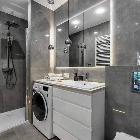 Warsaw Airport Studio With Private Terrace provides an oven and a dishwasher in a kitchenette. The 1-room Warsaw Airport Studio With Private Terrace is within 300 metres of PKP Sluzewiec 02 bus stop and in close proximity to Warszawa Sluzewiec train station.